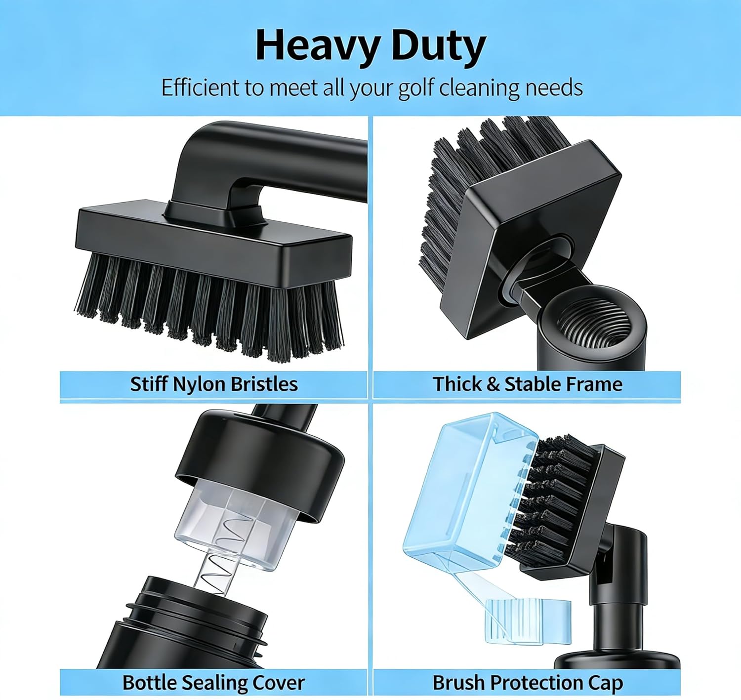 Premium golf club cleaning brush with pressure water sprayer Usage: This practical 2-in-1 solution cleans golf clubs effortlessly and thoroughly. By combining a pressurized water sprayer with a durable nylon brush, it effectively removes dirt and grass residue - ideal for quick use on the golf course. Product capacity: Equipped with a 150 ml (5 ounce) water tank that provides enough water for multiple cleaning processes without requiring frequent refills.