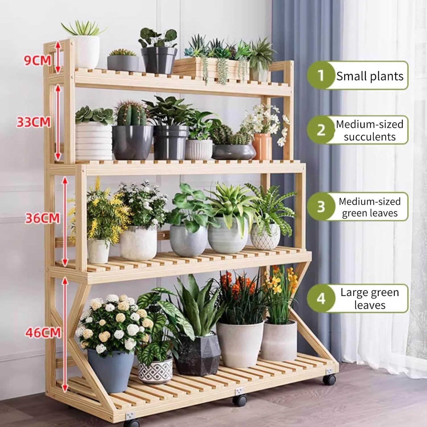 This is a flower stand. The beautiful flower stand can be displayed in your living room, balcony, terrace, or outdoor garden, creating a warm and cozy atmosphere for your home. ------------------------------------------------------------------❧Product Specifications: ●Material: Solid wood ●Color: Brown ●Dimensions: 50x38x107cm (19.7x15x42.1in) 60x38x107cm (23.6x15x42.1in) 70x38x107cm (27.6x15x42.1in)80 x 38 x 107 cm (31.5 x 15 x 42.1 in)90 x 38 x 107 cm (35.4 x 15 x 42.1 in)100 x 38 x 107 cm (39.4 x 15 x 42.1 in)50 x 38 x 144 cm (19.7 x 15 x 56.7 in) 60 x 38 x 144 cm (23.6 x 15 x 56.7 in) 70 x 38 x 144 cm (27.6 x 15 x 56.7 in)80 x 38 x 144 cm (31.5 x 15 x 56.7 in) 90 x 38 x 144 cm (35.4 x 15 x 56.7 in) 100 x 38 x 144 cm (39.4 x 15 x 56.7 in)●Suitable for: living rooms, bedrooms, offices, stores, etc.●Easy to clean: Simply wipe with a cloth and dry with a clean cloth. Waterproof and rust-resistant, ensuring long-term use. ●Features: Stable, sturdy, and vibration-free foot design. Modular design, original design, easy to use. ✄------------------------------------- -------------------------------☺★Tips:●We only sell flower stands, not other products.●Due to manual measurement methods, there may be a 1-2 cm error.●Color differences may occur depending on lighting conditions, but please select carefully within reasonable limits!