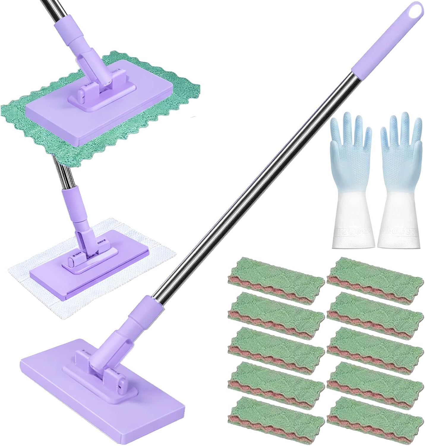 • DRY & WET CLEANING — LAZY MOP WET AND DRY:Use it as a lazy mop wet and dry for dusting, hair pickup, pet messes, spills, bathroom glass, and floor stains. Works on tile, wood, laminate, vinyl, and more—one mop for daily touch-ups and deep cleaning.