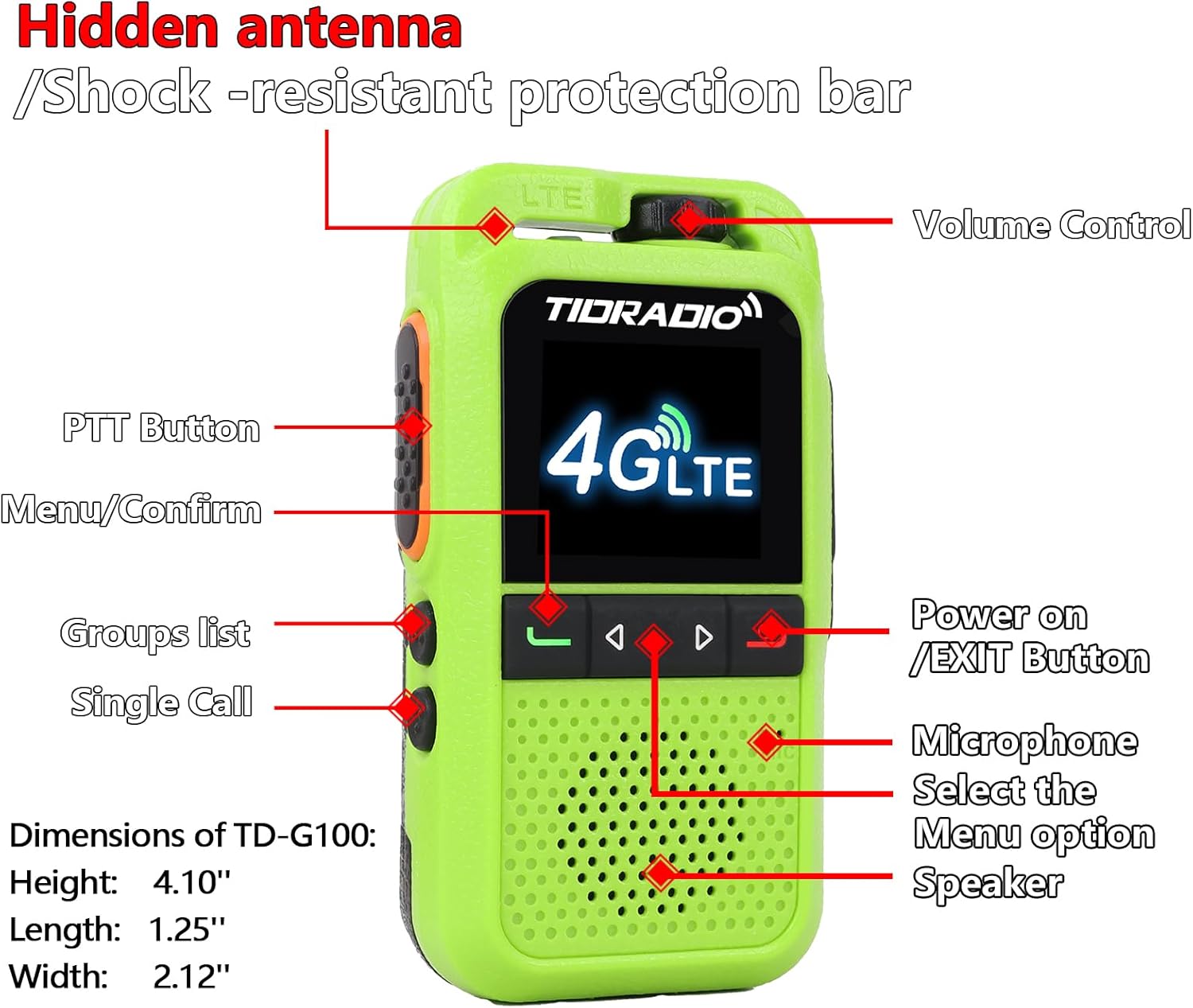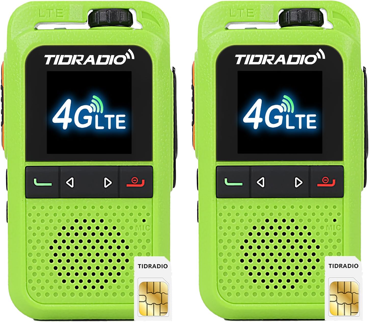 TIDRADIO TD-G100 Rapid Unlimited Range 4G LTE PoC Walkie Talkies Long Range with SIM Cards, Global PTT for Family, Logistics, Truck Fleet,Construction site,Black with Green 4Pack