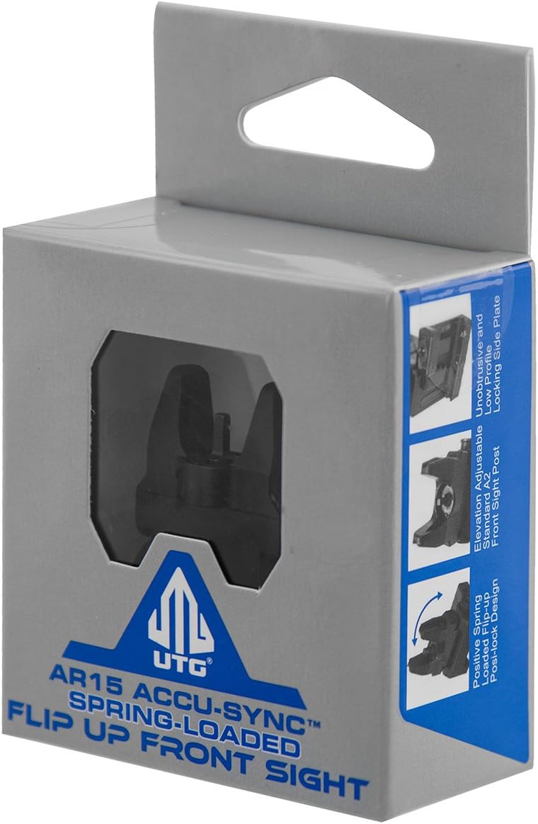 The UTG ACCU-SYNC Spring-loaded Flip-up Front Sight conveniently utilizes a standard A2 front sight post and is precision machined from matte black anodized aircraft aluminum. Its low profile mounting base securely attaches to any Picatinny rail and uses squared recoil stops for a secure zero hold and return to zero. Our spring-loaded Posi-lock retention design locks the sight tower when it is both folded down and deployed, preventing the sight tower from collapsing when the sight is in use; designed to match our ACCU-SYNC Flip-up Rear Sight, MNT-957.