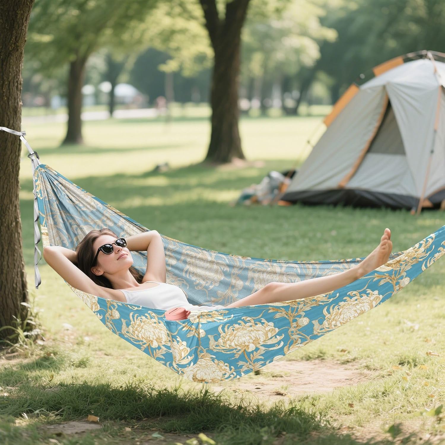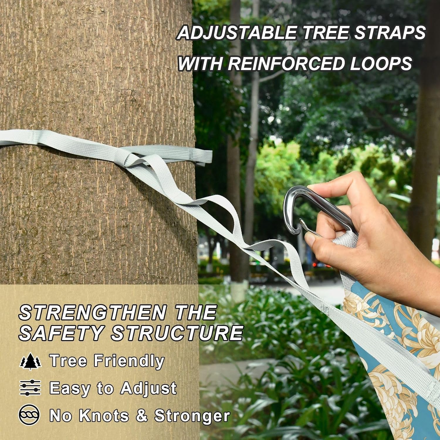 Large Size: 114 × 54.33 in. Although Swing Hammock is used as a hammock, the space is large enough to accommodate two people to rest together. It can bear a load of 330LB/150KG.Wear-resistant Materials: High-strength and breathable 210T polyester hammock fabric, aluminum alloy climbing buckles, high-density 600D imitation nylon webinar. Hanging Hammock has good wear resistance and load-bearing performance.Design: This edge of Portable Folding Hammock is equipped with hanging pockets, which can be used to store personal items. Hammock is relatively light in overall weight. A single hammock usually weighs 490g and can be folded for storage. When folded, it is compact in size and easy to carry.Applicable Scenarios: Rope Hammock is suitable for various outdoor activities, such as camping, traveling, hiking, etc.Warm Reminder: When cleaning this Rope Hammock, remember to remove the climbing at both ends.