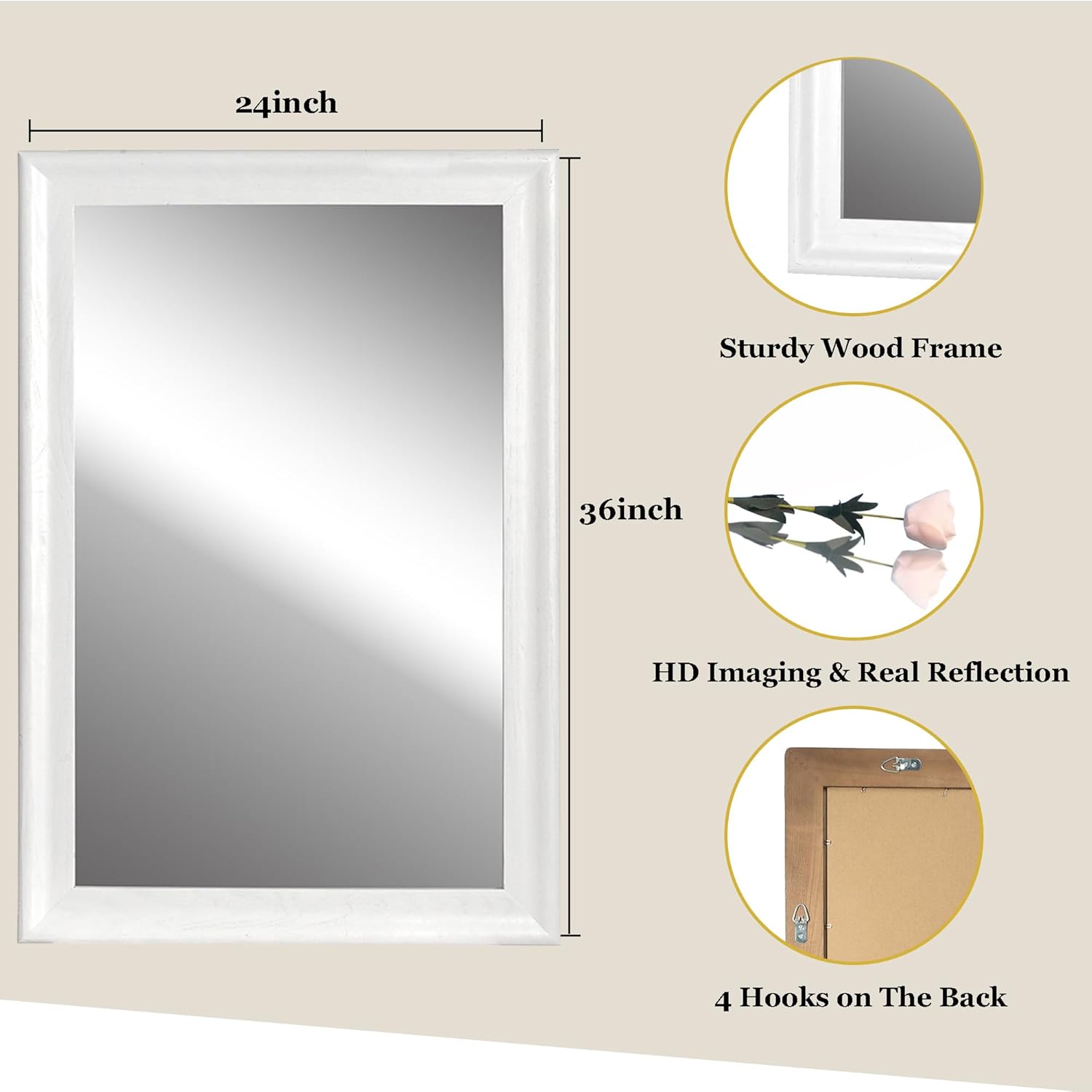 Beautiful Color - The frame of this rectangular mirror is finished with a high-quality material that provides a smooth texture and a polished look,and the unique grain pattern of the wooden frame highlights the organic nature of the material, making each mirror a one-of-a-kind piece.ensuring long-lasting use.