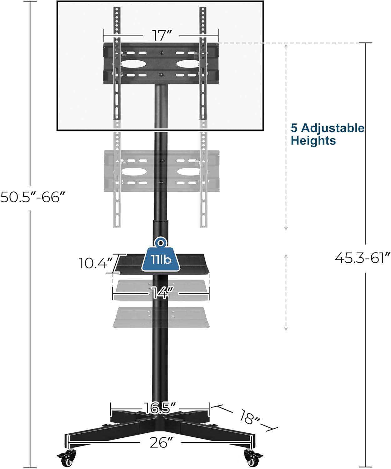 | Size | 26″ L × 18″ W × 50.5-66″ H |